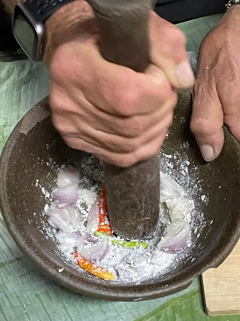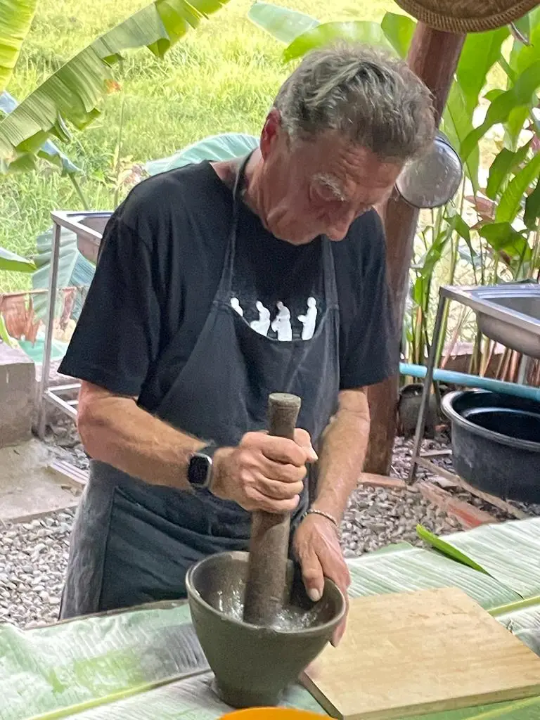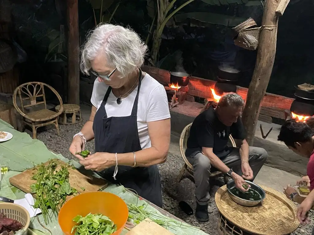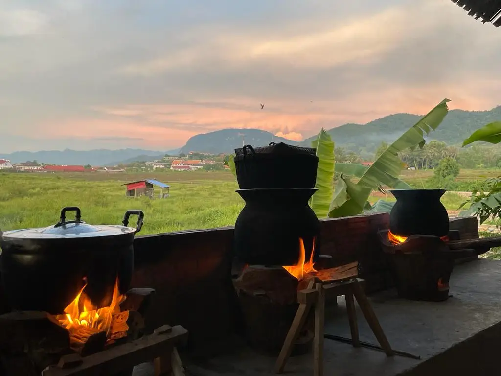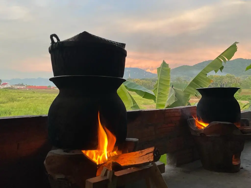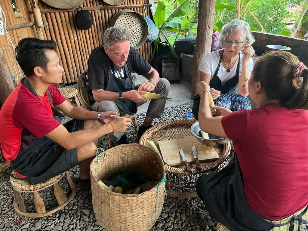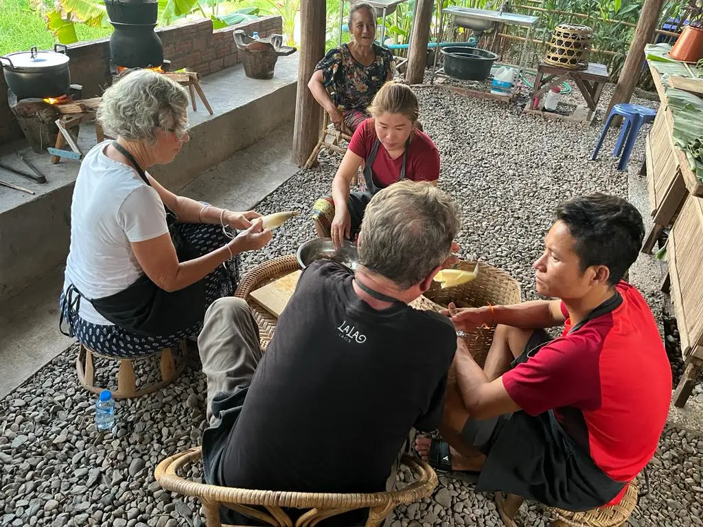 上午9:00出发,前往当地家庭烹饪体验,首先是前往Phosy市场,与当地家庭的主人见面。她将带领您穿过市场,与蔬菜、竹子等的市场卖家见面...您将帮助购买用于烹饪老挝美食的新鲜有机食材。当购买好食材后,将前往当地家庭的房子。抵达时,客人将受到家庭的欢迎,开始烹饪。制作和烹饪的菜肴将从Noung Khao(蒸糯米饭)开始,然后是竹笋汤(Keang Nor Mai),香蕉叶蒸鱼(Mok Pa),琅勃拉邦炖菜(Or Lam)和茄子酱(Jeo Mak Kheua)。烹饪方式将是当地家庭风格,使用火炉。所有菜肴烹饪完成后,客人可以与家庭成员一起享用烹饪的食物,然后品尝当季水果。午餐期间,客人可以品尝用糯米制成的家制老挝威士忌。客人非常欢迎与家庭成员分享关于老挝文化和家庭生活的对话。最后,客人将在午餐后的早下午返回酒店。
