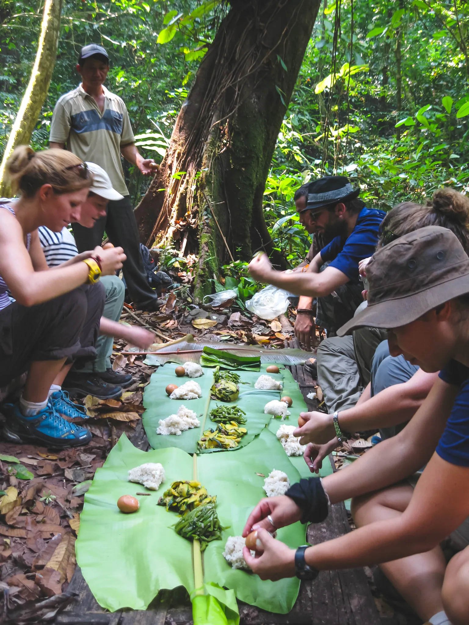 在树林深处,我们将休息用餐。在这里,我们的当地导游将返回他的村庄,而我们将继续前行。当我们接近河流时,森林的树木和植物种类变得更加丰富,让我们有机会充分沉浸在丛林中。导游将指出更为隐秘的野生动物迹象,包括该地区存在的熊、麝香猫和野猪。