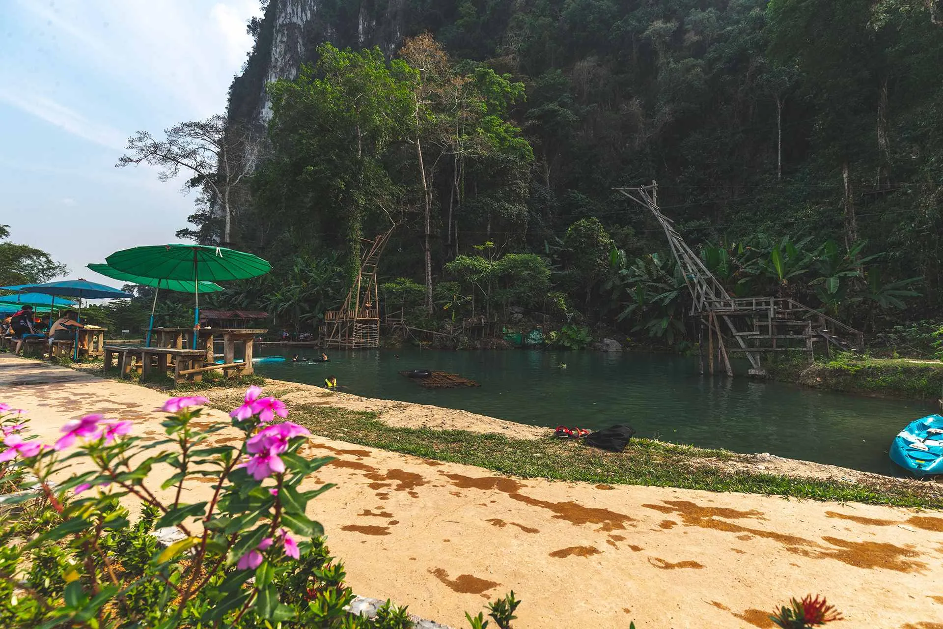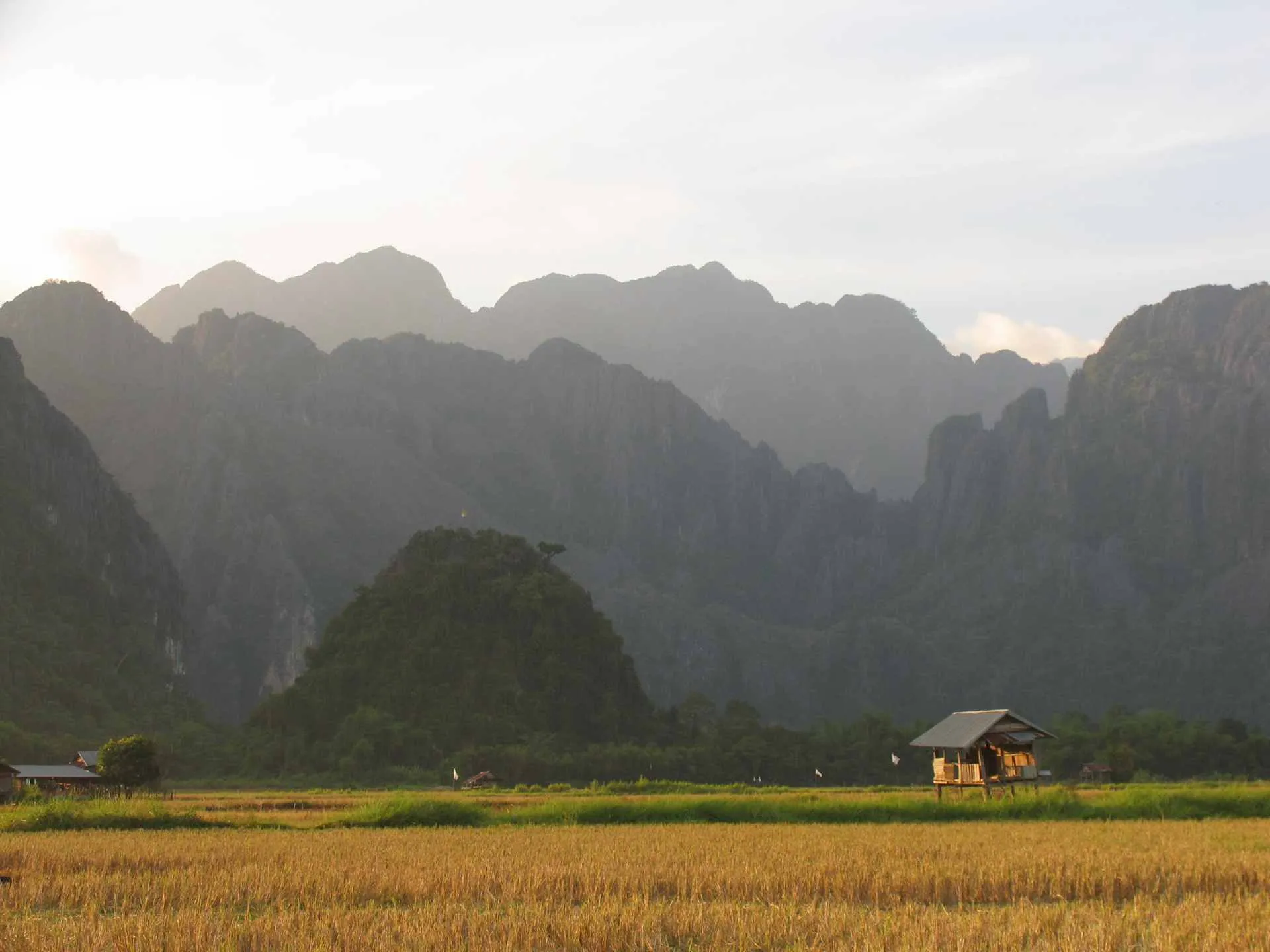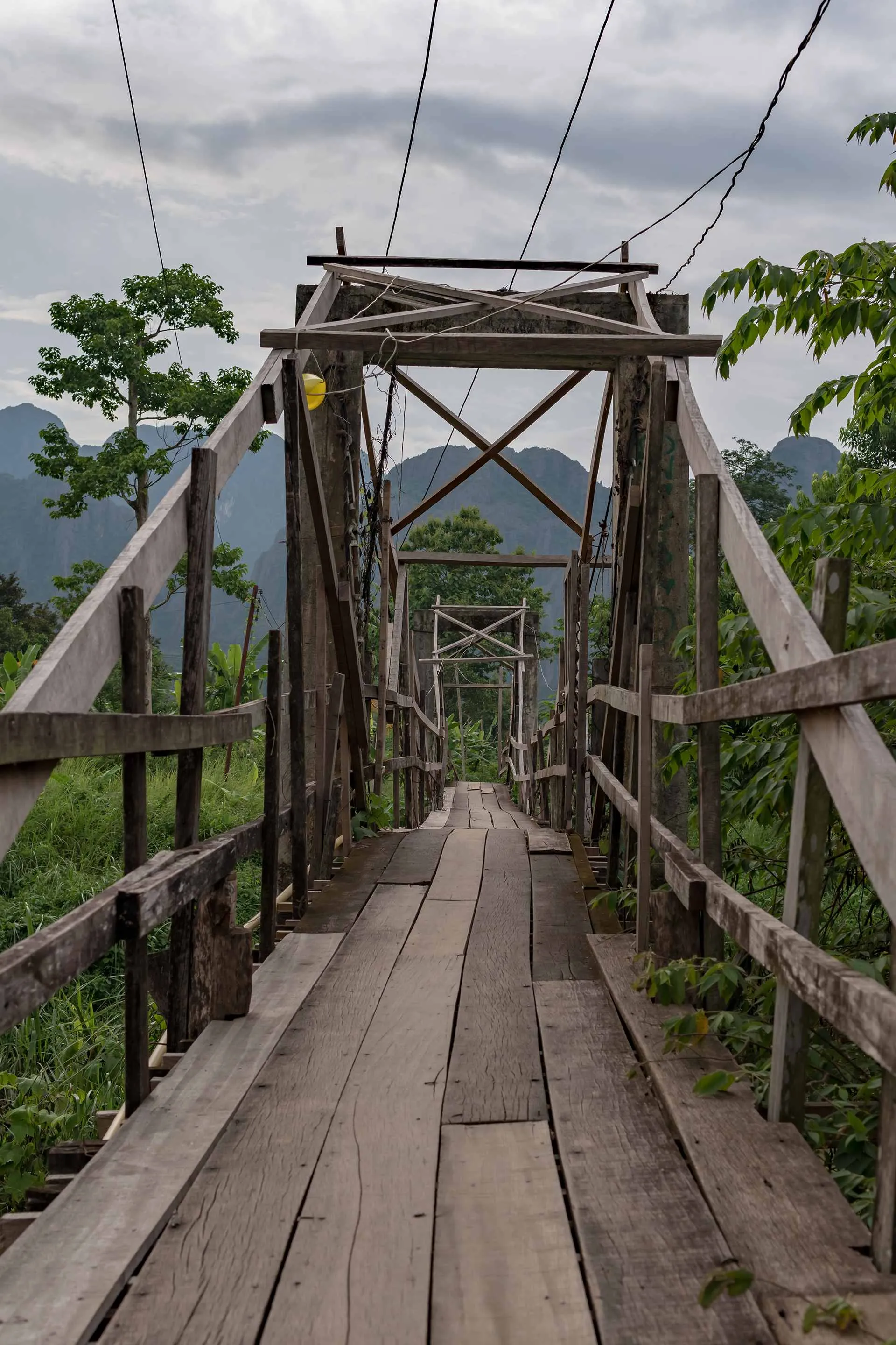 我们离开凡勾,穿过纳姆松河上的桥,开始整天的循环,经过稻田,直奔第一个观景点,这是一个拍照的好地方。之后,我们穿越纳姆松和凡勾的喀斯特地貌。骑行一小段路后,我们要攀爬到Dok Ngern(银花洞),探索隐藏的回廊,里面布满了无尽的钟乳石和石笋!