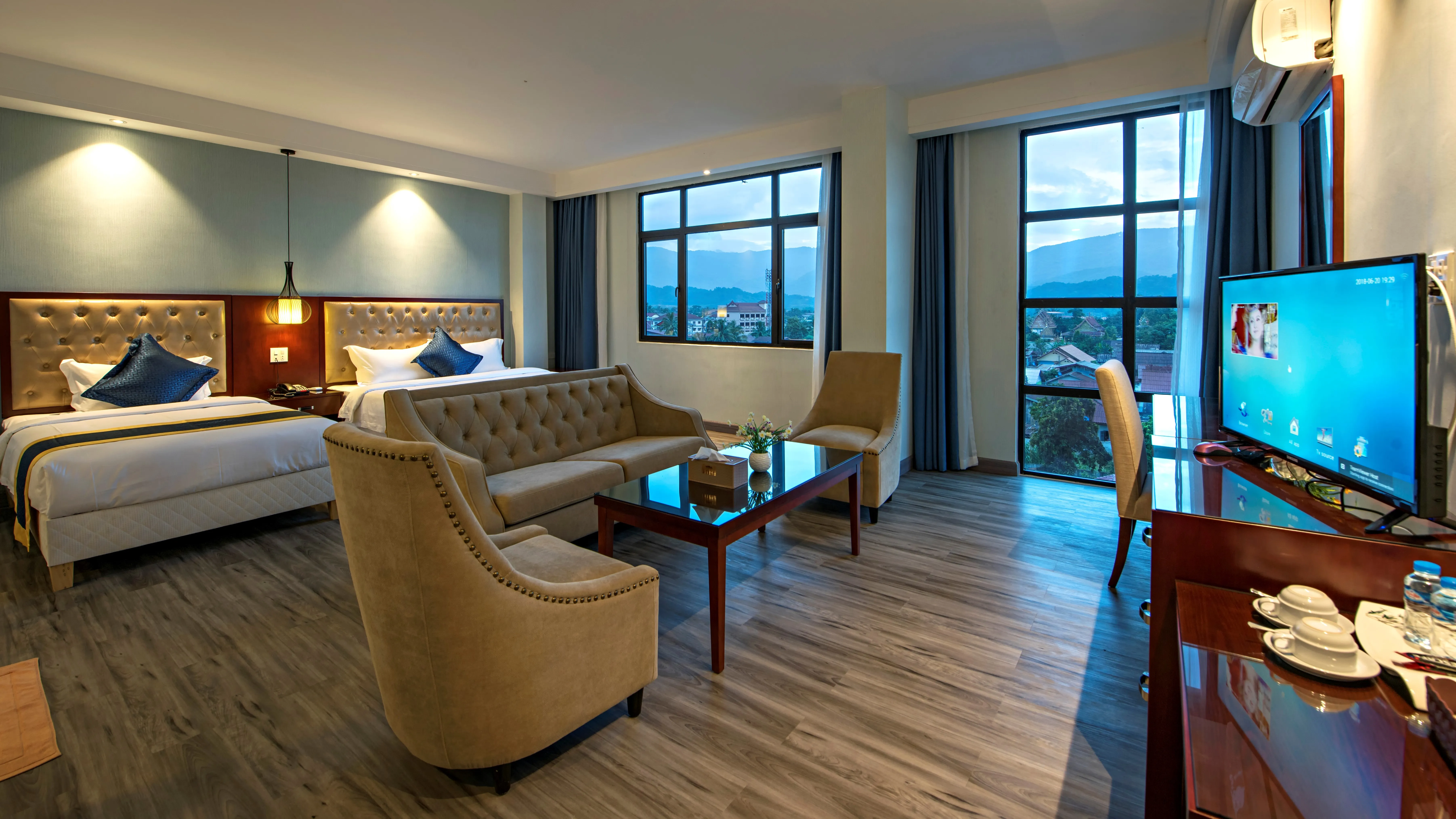 Our Deluxe Twin Room with Mountain View has a balcony with a scenic view of Vang Vieng's limestone mountains. The room offers 2 big size single beds with comfortable thick mattress. The modern facilities make the room suitable for both business and leisure travellers.