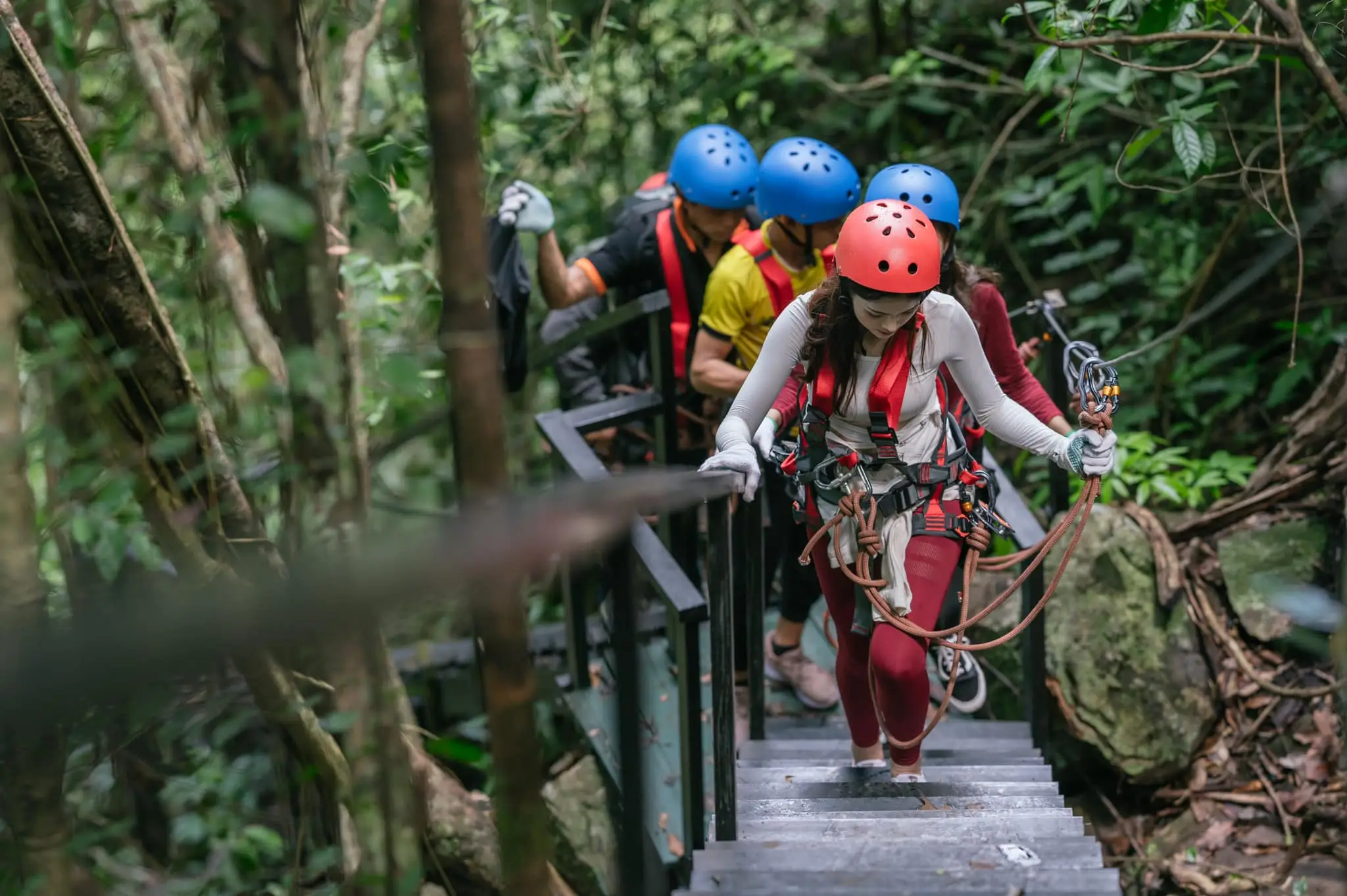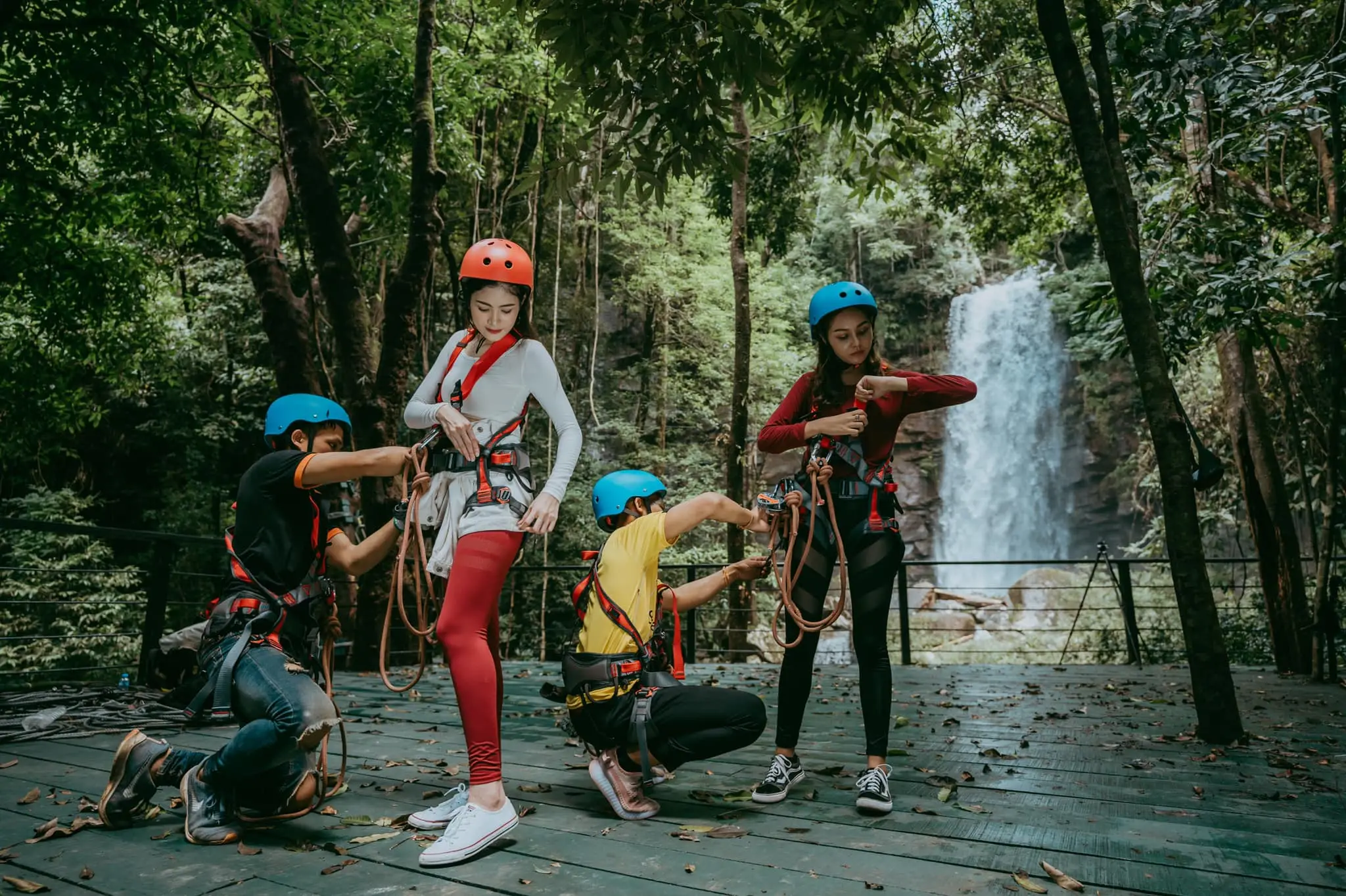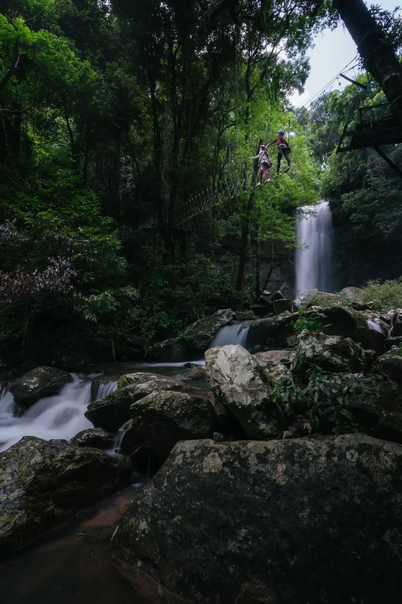 ເລີ່ມຈາກສູນຂໍ້ມູນກ່ອນເວລາ 15:00 ໂມງ ດ້ວຍການຂີ່ລົດນໍາທ່ຽວ ໄລຍະທາງ 4 km ແລ້ວໄຕ່ຂົວຊົມປ່າ, ໄປຊົມນໍ້າຕົກ ໄລຍະທາງ 1 km, ແລ້ວຂຶ້ນຫາຈຸດຖ່າຍຮູບ, ຈາກນັ້ນຂີ່ສະລິງ 10 ເສັ້ນ, ກັບມາຈຸດສິ້ນສຸດສະລິງແລ້ວຂີ່ລົດນໍາທ່ຽວໄປສວນນໍ້າ, ຂົວອູ່, ຈຸດຖ່າຍຮູບວິວຕ່າງໆ ແລ້ວກັບສູນຂໍ້ມູນ.