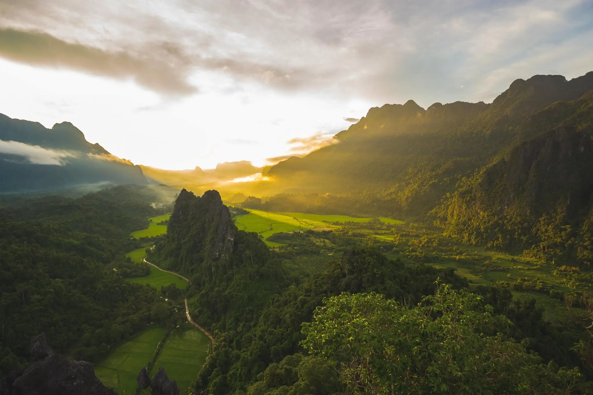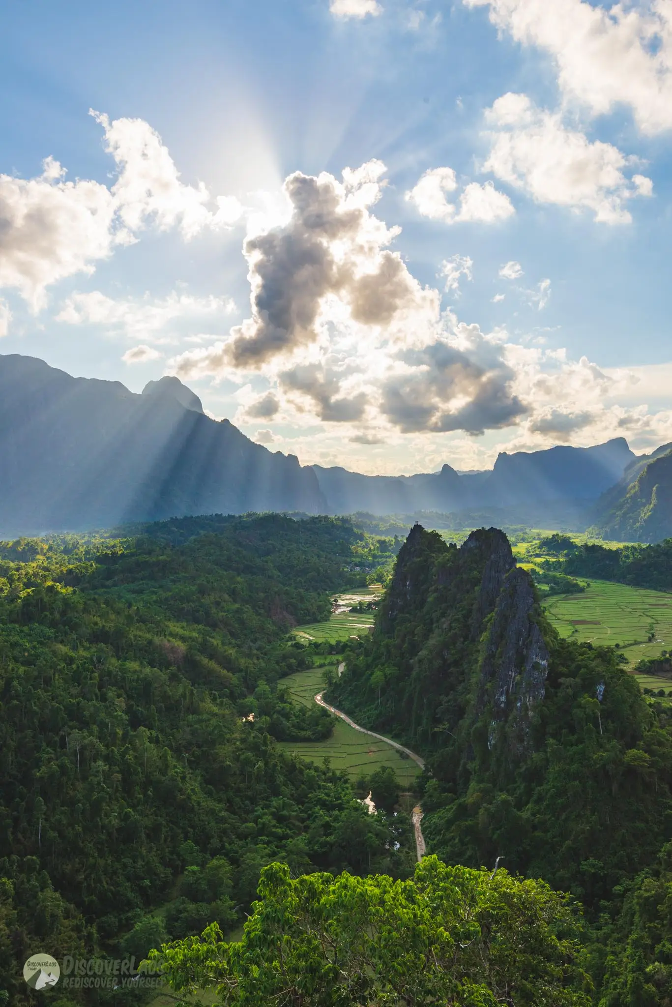 มุ่งหน้าไปยังจุดชมวิวผาหนามไซ เพื่อชมทิวทัศน์อันน่าทึ่งของทุ่งนาอันเขียวชอุ่มของวังเวียงและหน้าผาหินปูนขรุขระ แม้ว่าจะมีแท่นไม้ไผ่และกระท่อมแต่จุดชมวิวยังไม่เป็นที่รู้จักอย่างกว้างขวางทำให้คุณสามารถประหลาดใจไปกับทิวทัศน์ที่งดงาม การขึ้นเขา 20 นาที นั้นค่อนข้างง่าย มีเสริมด้วยราวบันไดและขั้นบันได แต่อาจเป็นเรื่องยุ่งยากหน่อยถ้าหลังฝนตก