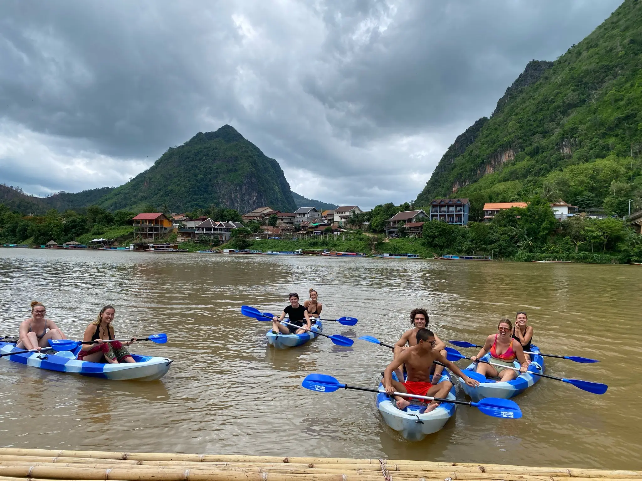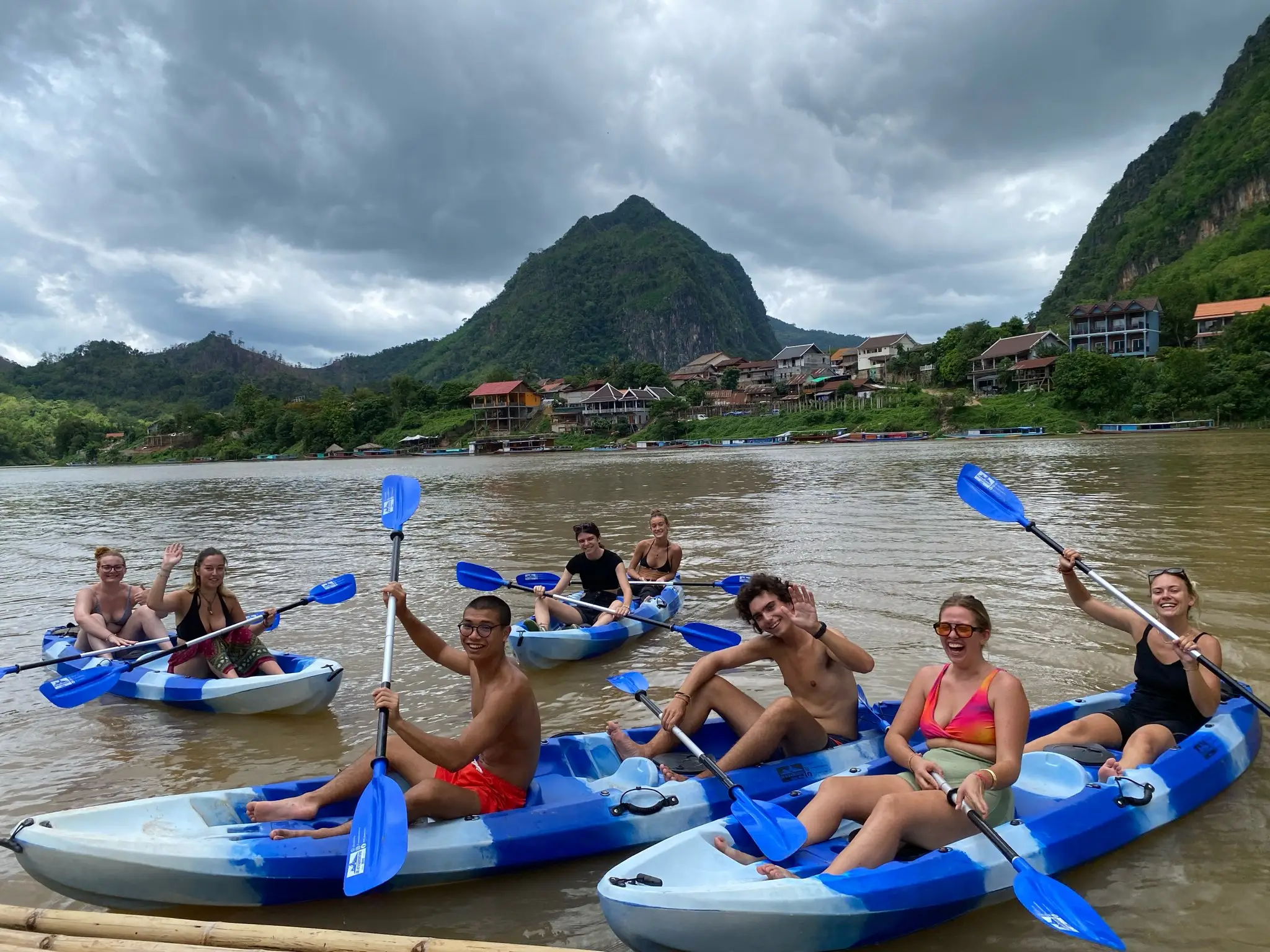 Join us for a two-day adventure in Nong Khiaw! Start your journey with a scenic trek through lush forests and rice fields, leading to a Hmong village where you'll enjoy lunch and experience traditional Lao life. After a homestay and dinner with a local family, embark on a boat cruise to Muang Ngoi, explore the stunning Phanoi viewpoint, and visit a Khmu village. Trek to an organic farm, swim at a waterfall, and end your trip with a thrilling kayaking adventure along the river. This unforgettable journey through Nong Khiaw's landscapes and cultures awaits you! (Read full itinerary for each day below)