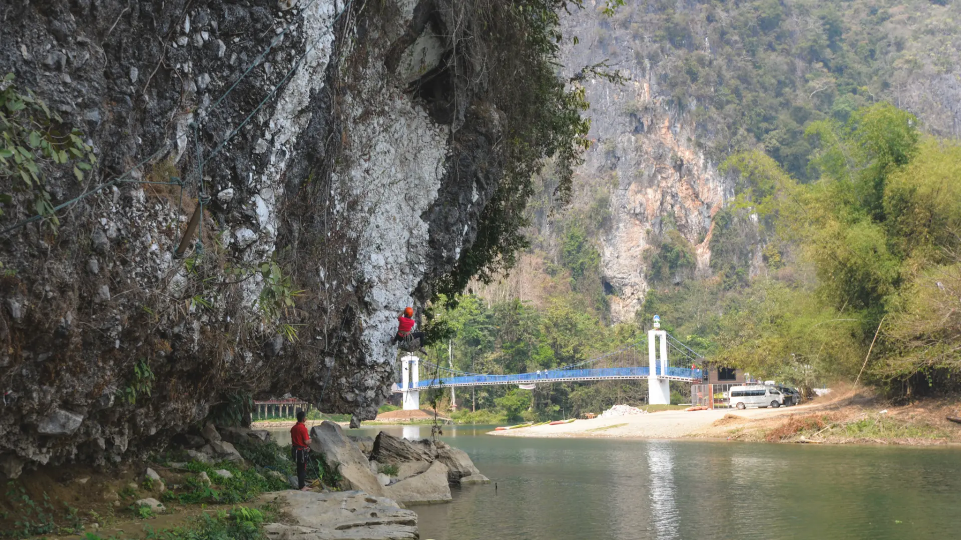 Rock climbing – a “must-do” in Southeast Asia!  Vang Vieng is a stunning area for rock climbers. Rock climbing – a “must-do” in Southeast Asia!  Vang Vieng is a stunning area for rock climbers. Adam’s Rock-Climbing was the first company that began climbing's activity and provided the Rock-Climbing service in Vang Vieng. It located on the banks of the beautiful Nam Song River at WanSaNgao village.