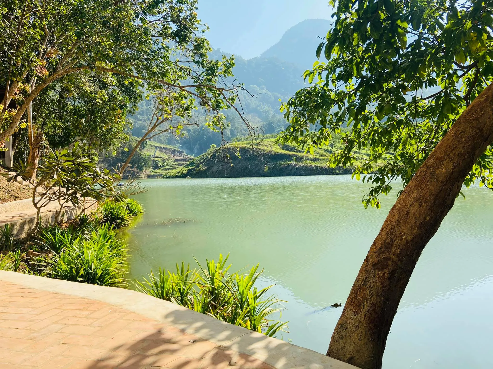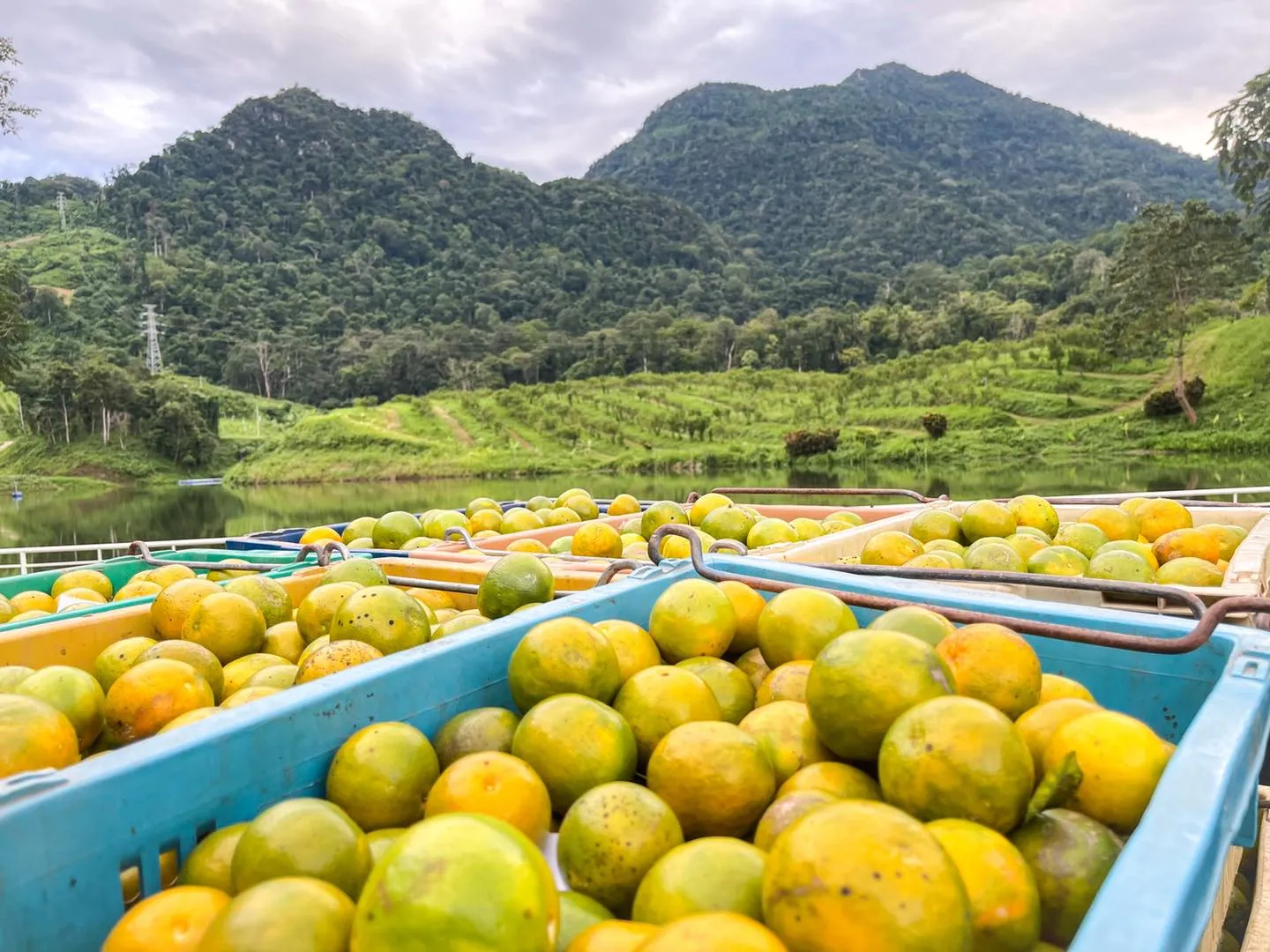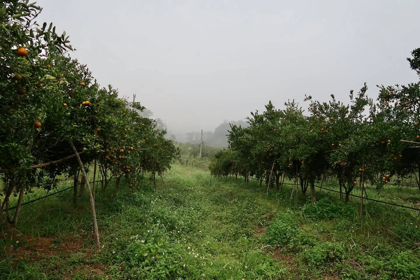 Organic Orange Farm, or what most people call Switzerland, Laos; with landscape views of lush nature and big mountains. The farm also offers photo props as picnic and camping kits.